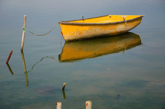 Routine du passeur qui inlassablement tangue d’un bord à l’autre de la rivière, attendant d’être, par un miracle de saint batelier, délivré de sa rame. Il regarde le courant du temps descendre vers l’estuaire de ses espoirs mais n’ose briser la chaîne qui le retient dans l’anse de son ennui
